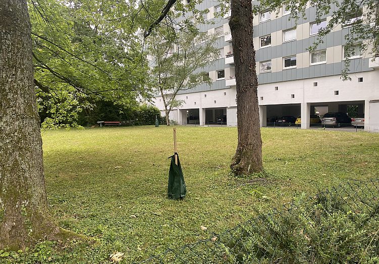 Mit Bewässerungsbeuteln bleibt das Wasser auf der Baumscheibe