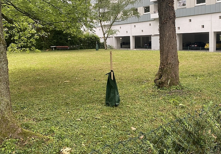 Um die Baumbewässerungssäcke im Wurzelbereich aufzustellen, kannst du einen Pflock verwenden. Eine Anleitung dazu findest du hier.