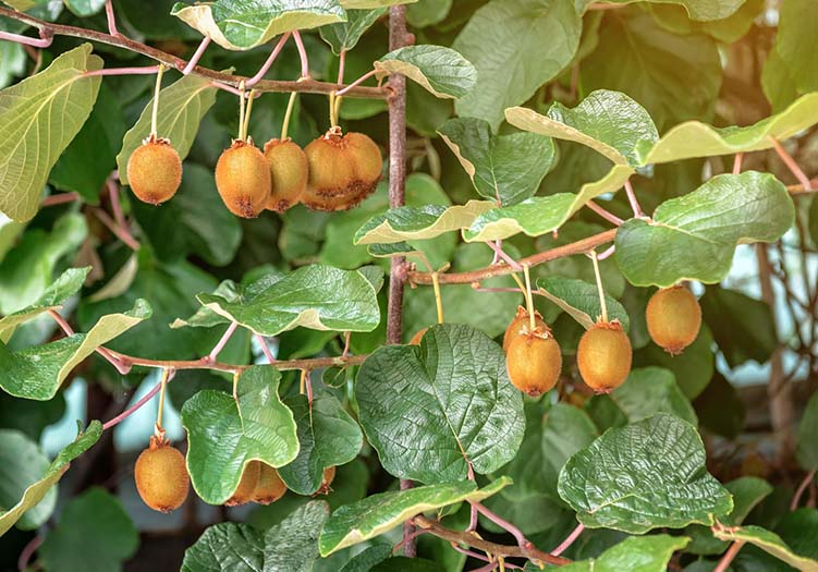 Die Kiwi fühlt sich in nährstoffreichen, durchlässigen und gleichmäßig feuchten Böden wohl. Sie gehört zu den Kletterpflanzen und kann einige Meter hoch werden. Es wird ein Gerüst oder eine Wand benötigt, an der sie sich festhalten kann. Der Standort sollte sonnig bis halbschattig und windgeschützt sein. Die Kiwi ist ein Flachwurzler und kann bei Trockenheit an den bodennahen Wurzeln leicht Schaden nehmen. Der Boden des Wurzelbereichs sollte möglichst nicht bearbeitet werden.