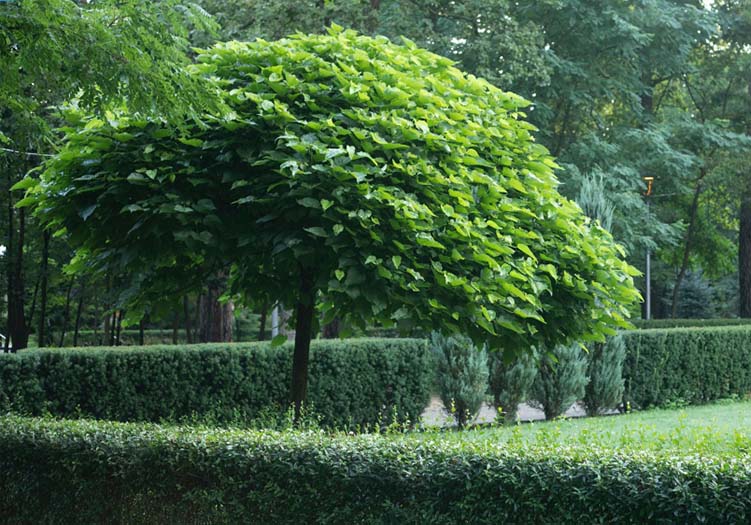 Trompetenbäume (Catalpa bignonioides), sind immergrüne Bäume aus der Familie der Bignoniaceae. Sie stammen ursprünglich aus Nordamerika und wurden erst im 19. Jahrhundert in Europa eingeführt und haben sich schnell als Zierpflanzen etabliert. Heute sind Trompetenbäume in vielen Teilen der Welt beliebt und werden oft in Parks und Gärten gepflanzt. Trompetenbäume sind bekannt für ihre langen, herabhängenden Blüten, die im Frühsommer in leuchtendem Weiß, Gelb oder Orange erscheinen und wie Trompeten geformt sind. Die Blätter sind breit und herzförmig und haben eine grüne Farbe. Trompetenbäume wachsen schnell und können bis zu 30 m hoch werden. Sie sind sehr anpassungsfähig und können in fast jedem Klima gedeihen, solange sie genügend Sonnenlicht und Wasser bekommen. Sie eignen sich besonders gut als Schattenspender und sind somit ideal für den Garten.