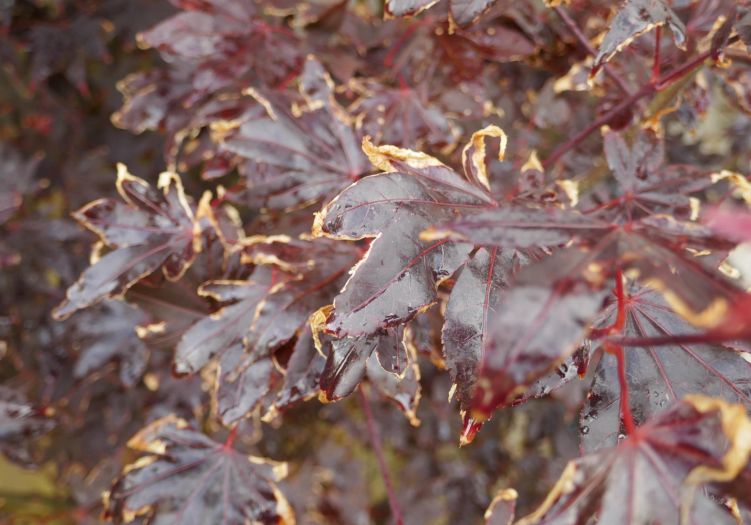 Charakteristisch für den Zimtahorn ist seine rotbraune, papierartig abrollende Rinde, die in der Sonne besonders schön glänzt. Diese schimmernde, schälende Borke erinnert in Farbe und Struktur an Zimt – daher auch der Name. Besonders im Winter, wenn das Laub fehlt, ist die Rinde ein dekorativer Blickfang im Garten. Der Zimtahorn wächst langsam und bleibt meist klein – in Mitteleuropa erreicht er Höhen von 6 bis 9 Metern. Seine gefiederten Blätter bestehen aus drei kleinen, elliptischen Einzelblättchen, die im Herbst eine leuchtend orange bis scharlachrote Färbung annehmen. Er zählt damit zu den schönsten Herbstfärbern unter den Ahornarten.