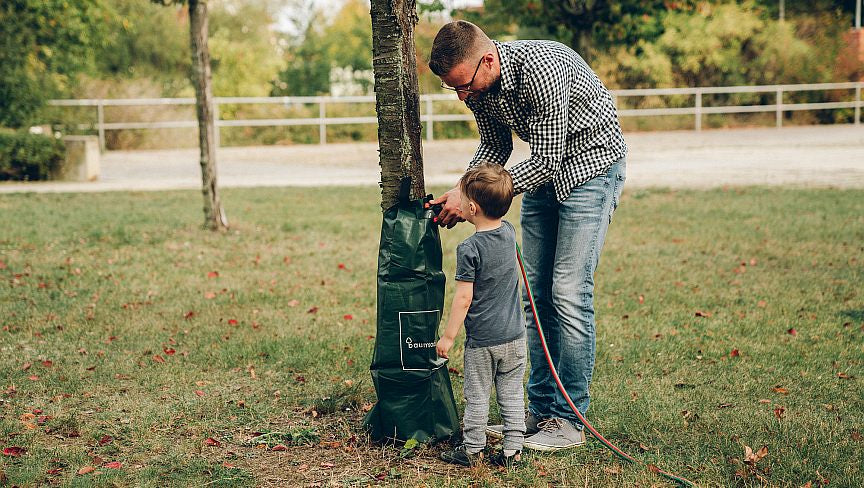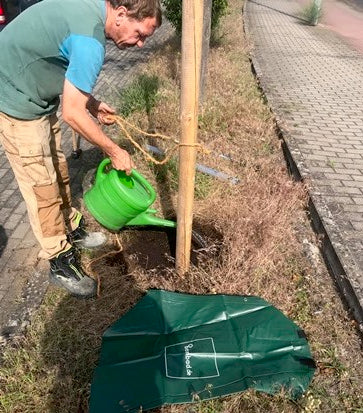 Um es den Paten zu erleichtern die Bäume zu bewässern, können Bewässerungshilfen wie Baumbeutel und Gießkannen bereit gestellt werden.