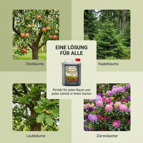 Mit Bewässerungsbeutel: 100 ml Flüssigdünger in 55–75 Liter Wasser verdünnen. Ideal für junge Bäume, Stadtbäume und längere Trockenperioden.